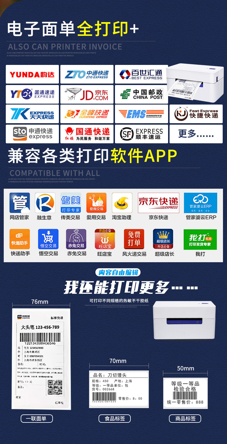 启锐 QR-368 一联80mm单快递打单机热敏标签贴纸电子面单小型蓝牙快递单打印机通用便携不干胶价签条码快递打印机器